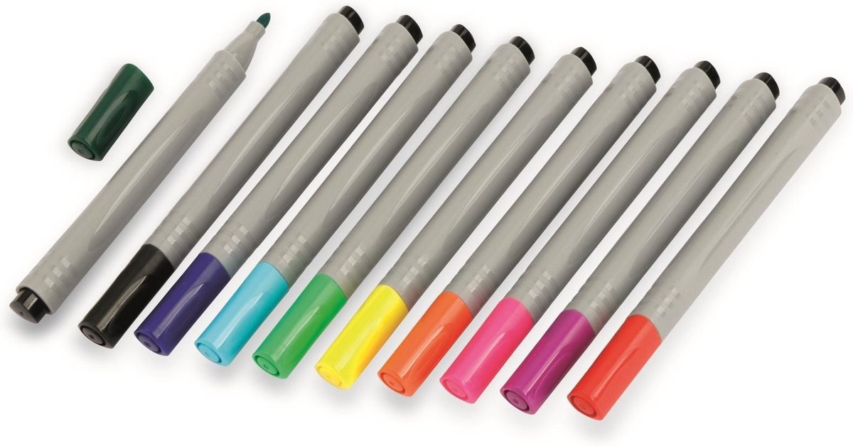 De felt tip pen, ideaal geschikte viltstift voor kinderen. Met geveerde, dikke punt is deze viltstift bijna onverwoestbaar Dankzij driehoek optiek ligt hij goed in de kinderhand. In kunststof etui met 10 kleuren: roze, blauw, groen, geel, zwart, rood, oranje, lichtblauw, lichtgroen, violet. Kenmerken: Merk: TOPWRITE, 10 stuks, Viltstiften, lengte 135 mm, Driehoekig model