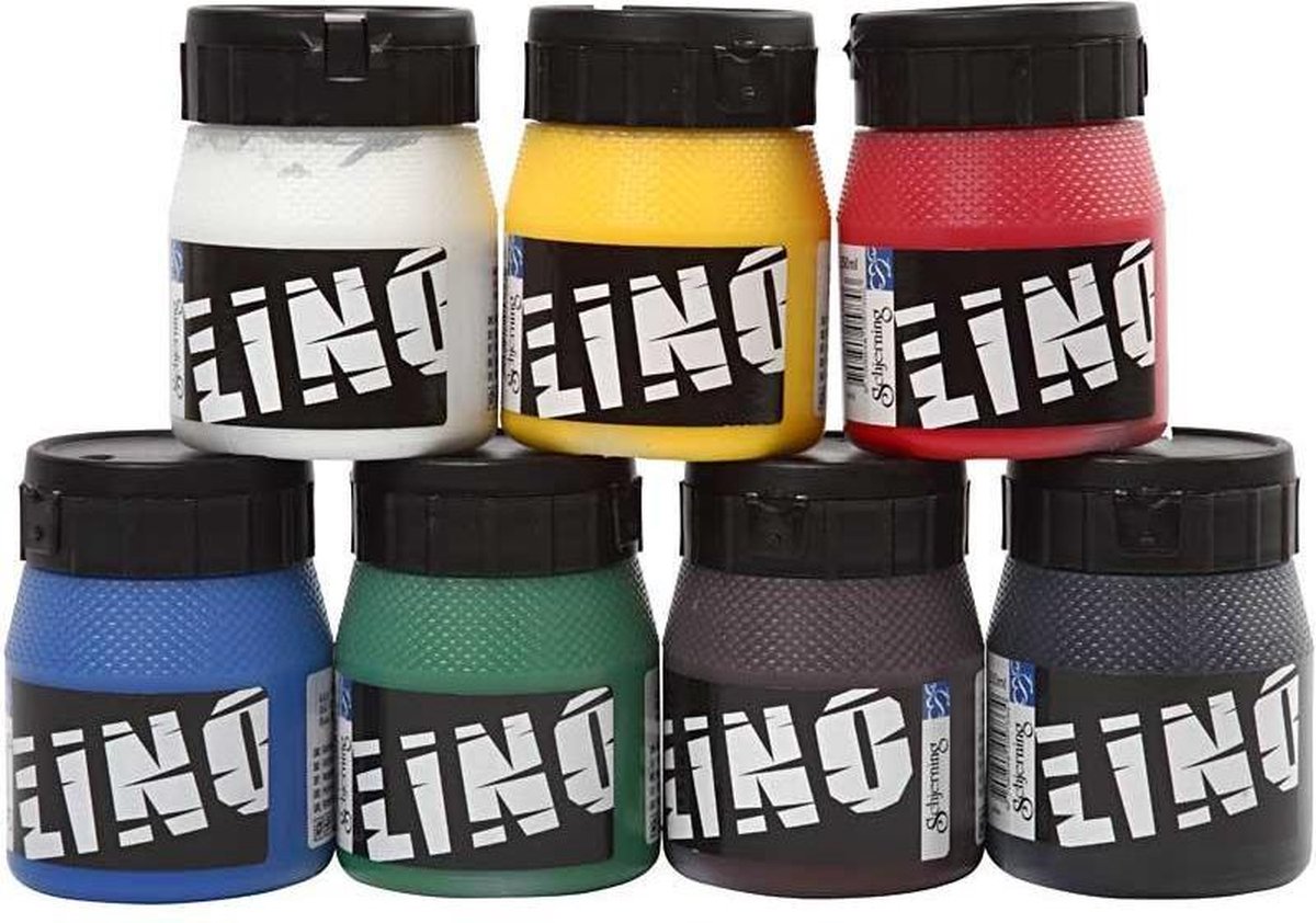 Linoleum verf. diverse kleuren. 7x250 ml/ 1 doos
