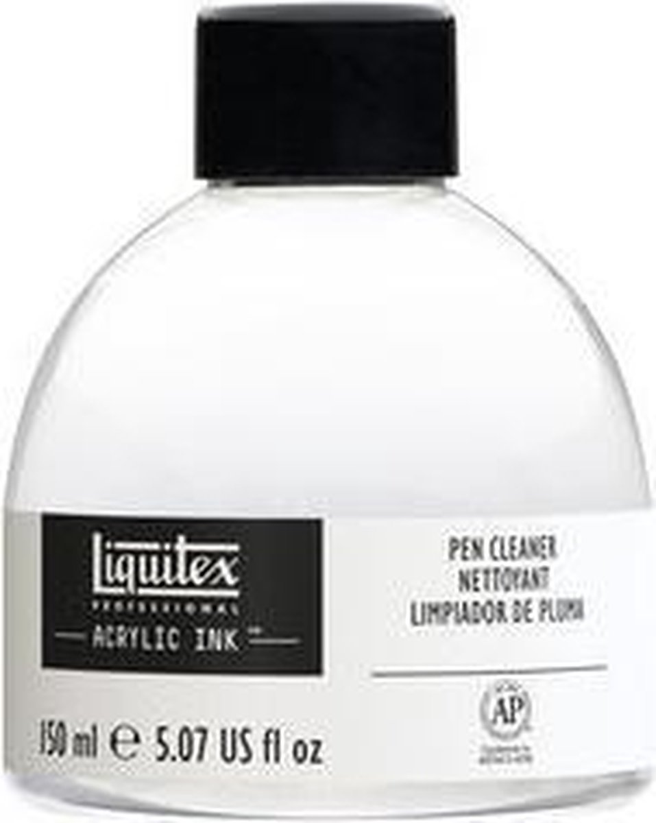 Voor het reinigen van penselen, pennetjes, airbrushes enz. Gewoon afwassen met een beetje Liquitex Acrylic Ink pennenreiniger volstaat om inktresten te verwijderen. Is er inkt opgedroogd op uw penselen of pennen, week ze dan enkele minuten in de Liquitex Acryl Ink pennenreiniger en spoel ze daarna af met water. Inhoud: 150 ml