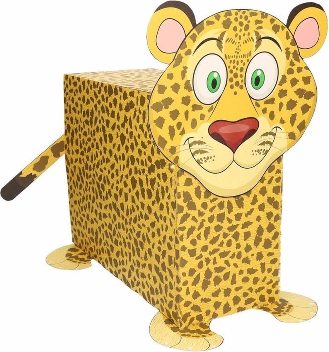 Luipaard zelf maken knutselpakket / Sinterklaas surprise. Compleet basis bouwpakket om een luipaard te kunnen maken zoals op de afbeelding. Dit pakket bestaat uit de basismaterialen en instructies die u nodig heeft om een luipaard te knutselen van ongeveer 41 x 16 x 35 cm. Daarna kunt u de surpise naar eigen wens versieren en personaliseren. Extra nodig: - Lijm - Schaar - Plakband / tape Ruimte voor kado: In het doosje is een ruimte van ongeveer 35 x 24 x 12 cm. Bestaande uit: 1x Doosje 2 bruin zonder opdruk, 1x Instructievel dieren knutselpakket , 6x Basis artikel dierenmasker luipaard