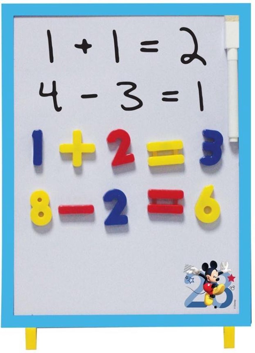 Luna Mickey Mouse magneetbord Dit multifunctioneel bord is perfect om jouw kindje urenlang mee te vermaken. Aan de ene kant heb je een wit magnetisch bord waar jij allerlei woordjes op kan plakken en kan schrijven. De andere kant van het bord is blauw. Specificaties: Geslacht: junior Kleur: wit, blauw Materiaal: kunststof Lengte: 30 cm Leeftijd: vanaf 4 jaar Inhoud: 1 magneetbord 1 Stift 35 Magneetjes