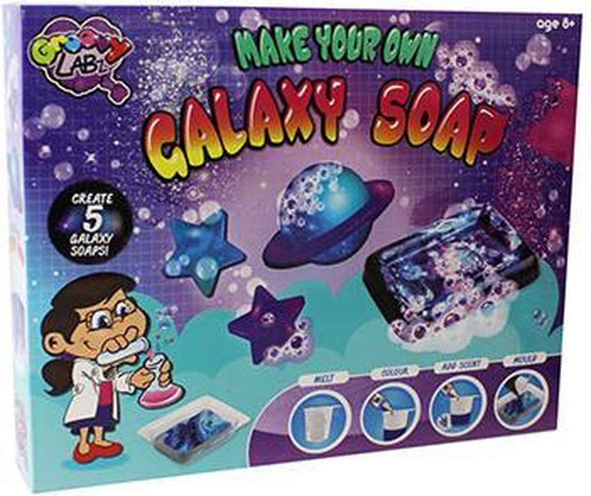 Creëer je eigen fantastische melkwegzeep met deze fantastische make-up set. Inclusief: • 2 zeepvormen • 3 gekleurde kleurstoffen • 2 geuren • 2 heldere zepen • 1 mengbeker • 1 roerstok • 1 glitterpakket • 1 paar handschoenen • Instructies Veel plezier bij het maken en maken van je eigen geweldige creaties. Productinformatie: • Maak je eigen Galaxy Soap • 5 zepen • Leuke gevormde mallen • Alles inbegrepen • Leeftijd 8+