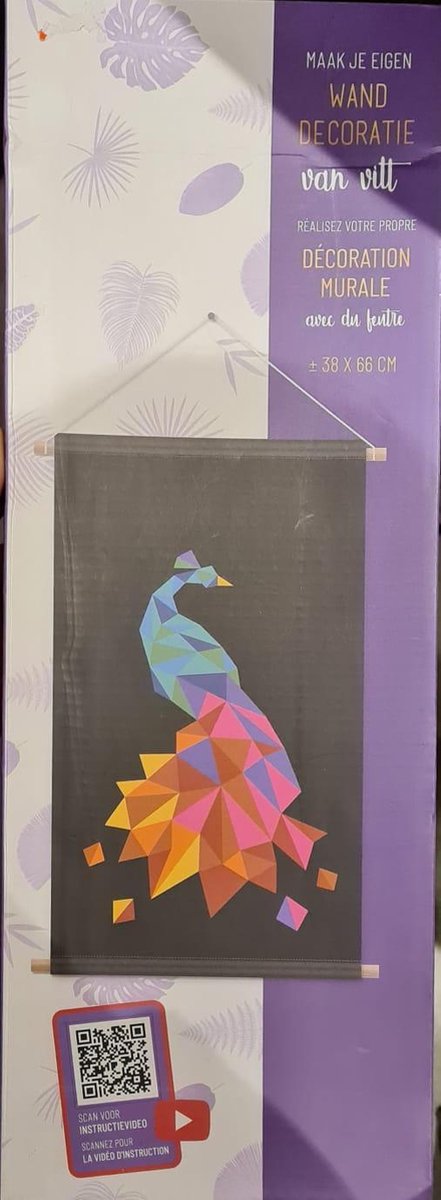 Maak je eigen wand decoratie van vilt - Pauw 38x66CM
