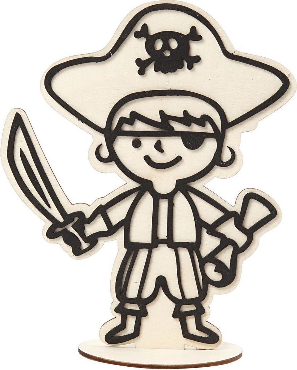 Made of Wood houten figuur Houten figuur met een motief in EVA-foam. Deze piraat kan gedecoreerd worden met Foam Clay, Silk Clay, verf of stiften. Specificaties: Geslacht: junior Leeftijd: 4 jaar en ouder Materiaal: hout, foam Kleur: blank Lengte: 19 cm Inhoud: 1 Houten figuur 1 Losse voet