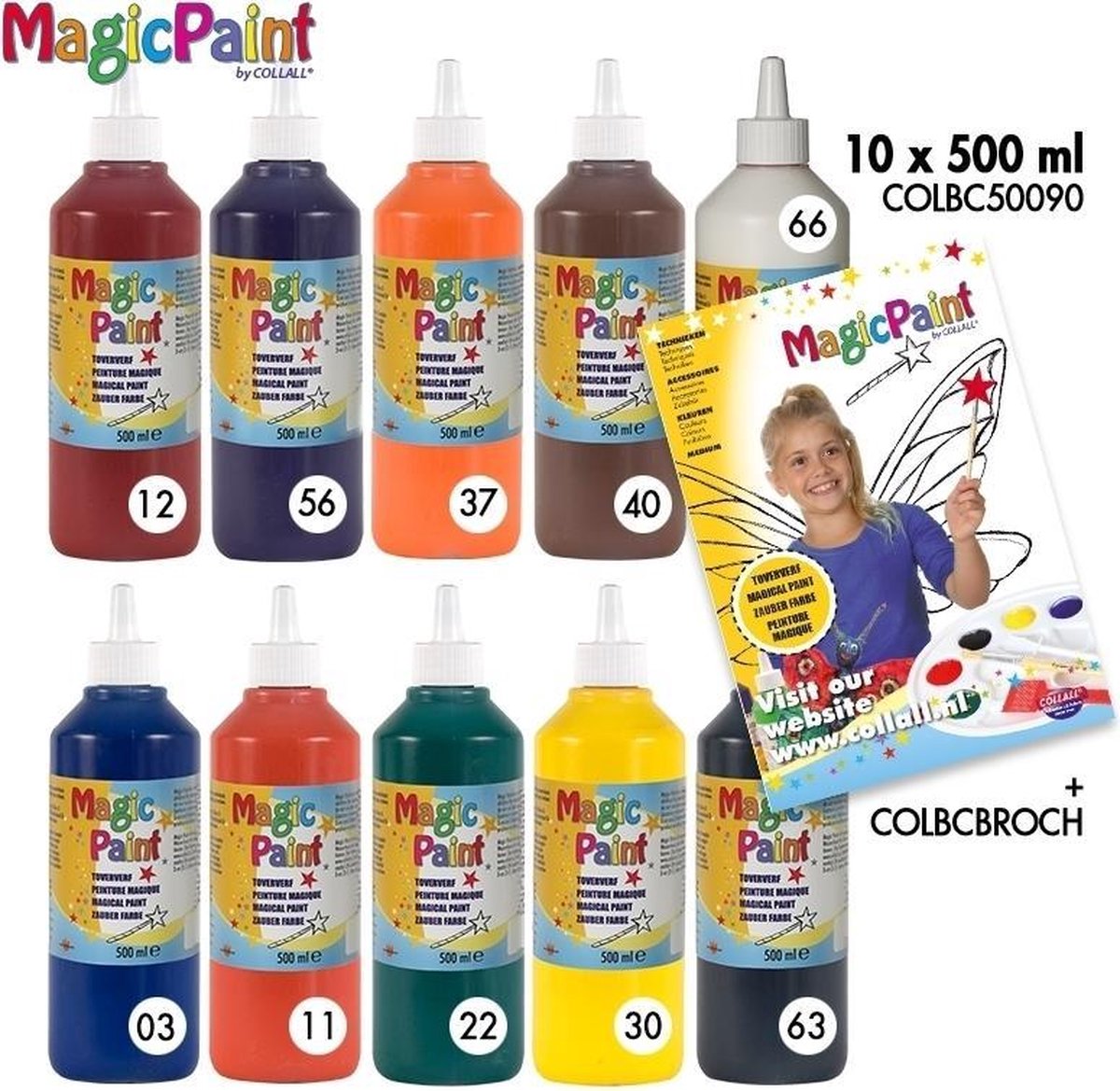 Magic Paint Assorti 10 kleuren x 500 ml Merk: Collall Ean-code: 8711557405454 Magic Paint Toververf is een unieke alles-in-één toververf op waterbasis voor eindeloos veel creatief verfplezier. Magic Paint is speciaal ontwikkeld voor kinderen. Door de speciale samenstelling lopen de kleuren niet vanzelf in elkaar over. Magic Paint bevat geen vulmiddel en blijft hierdoor glanzend en brokkelt nooit af. Geschikt voor kinderen vanaf 3 jaar. Magic Paint is te verkrijgen in 50 ml, 100 ml, 250 ml en 500 ml. Kijk ook in onze nieuwe folder voor alle technieken en tips met Magic Paint.