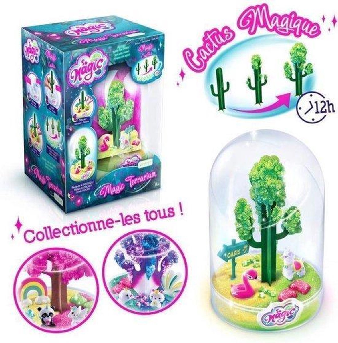 Maak je eigen Glitterarium van zand stenen en diverse decoraties en figuurtjes. Kijk hoe je jouw magische cactus ziet bloeien door het magische poeder. Het bevat een stolp gekleurd zand kiezels en decor materiaal. En een magische cactus Vanaf 8 jaar lees de waarschuwing op de achterzijde van de verpakking. Afmetingen (L x D x H): 16 x 13 x 22,5 cm.