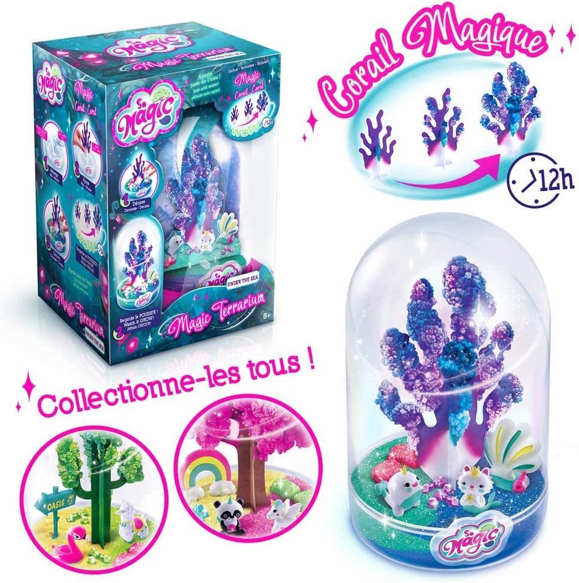 Maak je eigen Glitterarium van zand stenen en diverse decoraties en figuurtjes. Kijk hoe je jouw magisch koraal ziet bloeien door het magische poeder. Het bevat een stolp gekleurd zand kiezels en decor materiaal. En een magisch koraal Vanaf 8 jaar lees de waarschuwing op de achterzijde van de verpakking. Afmetingen (L x D x H): 16 x 13 x 22,5 cm.
