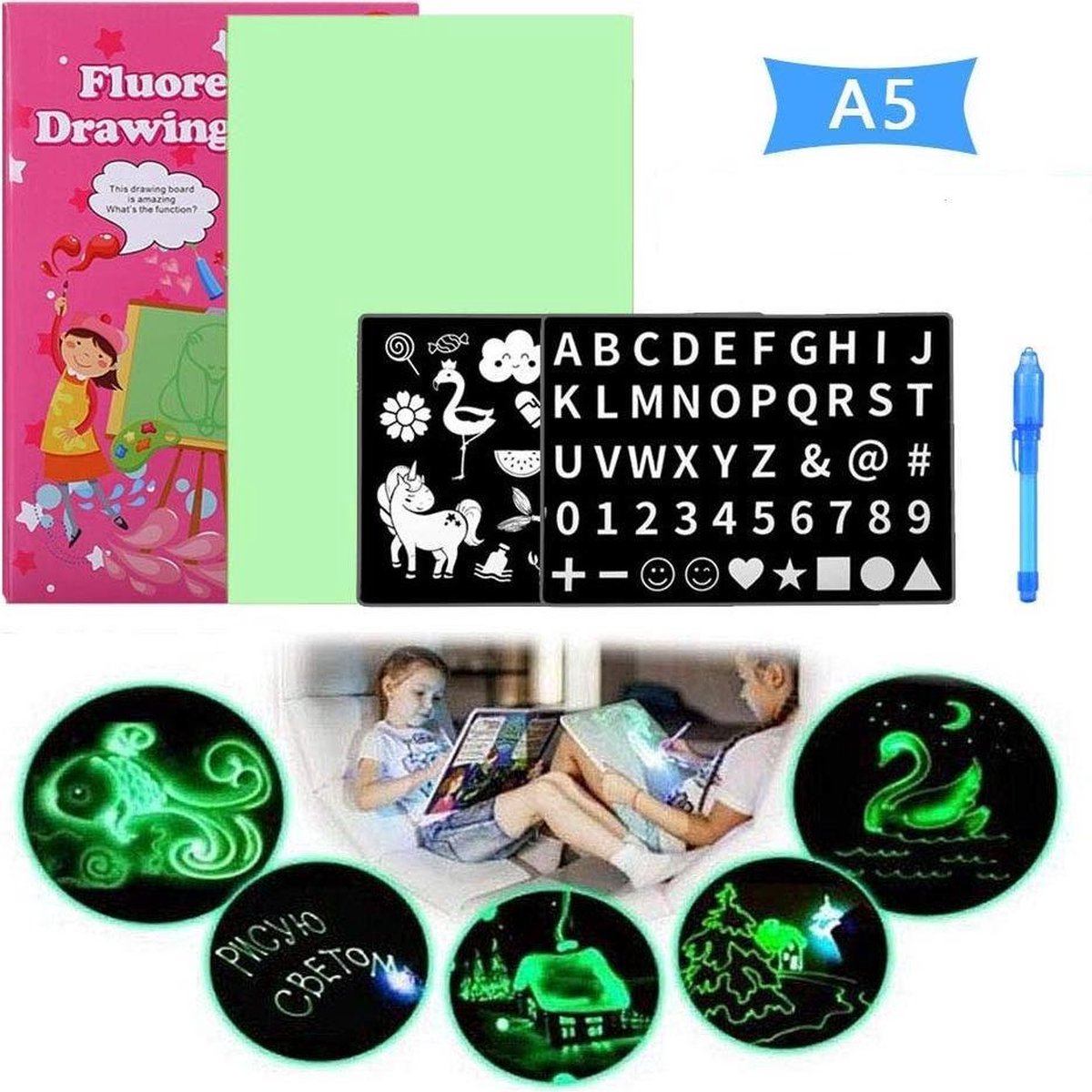 Zoekt u naar het juiste cadeau voor je kind om lekker te kunnen schilderen en tekenen dan ben je hier aan het juiste adres! [Teken met licht-leuk en ontwikkelend speelgoed, formaat: A3 / A4 / A5. Een set van "schilderen met licht" zal het kind helpen zijn creatieve potentieel te laten zien!! [Ontwikkelt vaardigheden en creativiteit] - Deze lichte tekentafel kan de creativiteit van kinderen verkennen, hun schrijf-, tel- en tekenvaardigheden ontwikkelen, zijn creatieve potentieel onthullen, maar tegelijkertijd worden meubels en behang in uw appartement niet "gedecoreerd" met patronen en handschrift. Aan het andere uiteinde van de marker bevindt zich een pen met speciale inkt die alleen onder het licht van de zaklamp verschijnt. Het kan niet op een tablet worden getekend - gebruik hiervoor gewoon papier! [Duurzamer] - Volledig dezelfde foto verdwijnt zichzelf na 30-40 minuten, waarvan de helderheid en helderheid afhangen van de afstand van de marker tot de tablet en de hellingshoek