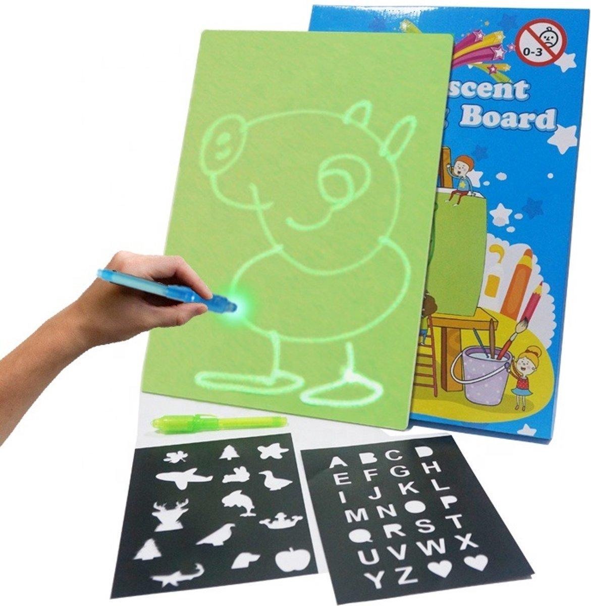 Dit tekenbord helpt de creativiteit en vaardigheden van kinderen te ontwikkelen en het speel plezier te vergroten. Het Magische tekenbord is ontwikkeld speelgoed, te verkrijgen in een set van A4 en in A3. Maak een tekening op het tekenbord met de magische toverpen of schrijf een geheime boodschap op papier. Niemand die het kan zien, maar schijn er overheen met de LED pen en jouw creatie is ineens zichtbaar. Maak jouw teken dromen realiteit want met dit magisch tekenbord komen tekeningen echt tot leven! Tijdelijk krijg je gratis 3 extra LED tekenpennen cadeau bij iedere bestelling. Wacht hierom niet langer en bestel nu dit magische tekenbord inclusief 3 gratis LED pennen en laat jouw tekeningen snel tot leven komen! Prestaties: ?Ideaal voor kinderen ?Ontwikkelt vaardigheden en creativiteit ?Niet buigbaar t.o.v. andere borden (geen kreukels in het bord) ?Niet schadelijk voor de gezondheid ?Duurzaam tekenbord ?Gegarandeerd uren speel plezier voor jong en oud ?Het product van 2019 Extra