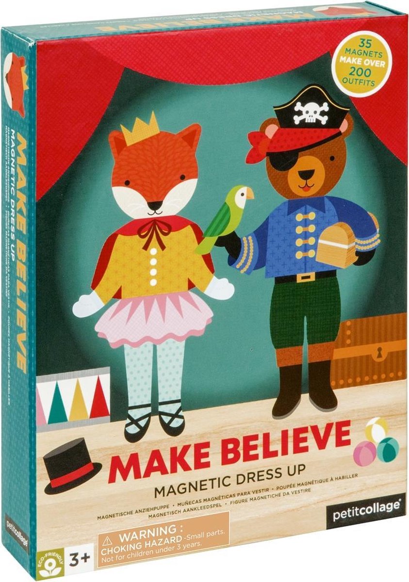 Met dit magnetisch aankleedspel van Petit Collage creëer je de leukste personages. De metalen box bevat een decor en aankleedfiguur. Speel ermee door het figuur andere kleding en accessoires te geven. In de handige meeneemverpakking neem je dit spelletje makkelijk mee op uitstap of op reis. Inhoud: metalen box met 1 achtergrond, 1 figuur & 32 magneetstukken