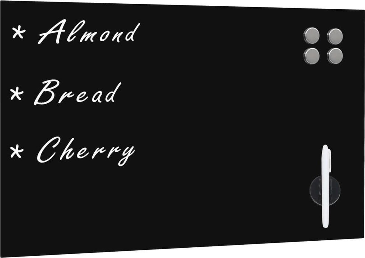 Onze Magnetische glas droog uitwisbare bord is a solution Ideale als u op zoek bent Naar een centrale Plaats in Uw huis te Creëren where je nota's, krabbel, van Weer te Geven foto's Kunnen writing. De Droge-whiteboard Een Magnetische, gehard glas oppervlak DAT gemakkelijk schoon te maken met de meegeleverde gom. De benodigde wandmontage Materialen Zijn Inbegrepen, wat Het Makkelijk Maakt OM Het bord te Koppelen aan Een muur in Uw huis, kantoor of school. Kleur: Zwart Materiaal: gehard glas + verzinkt staal Afmetingen: 60 x 40 cm (B x H) Board Dikte: 4 mm Eenvoudig te monteren aan Een wand bevestigingsmateriaal Meegeleverd Wordt desalniettemin aanvaardt voldaan: 1 x droog wissen boord 1 x Eraser 1 x White markeerstift 4 x Magnet