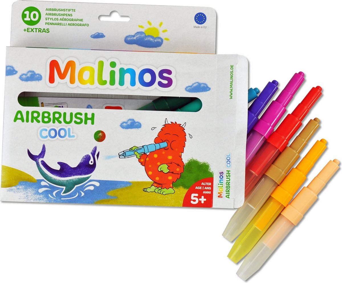 BLOpens Cool 10, nieuw in ons assortiment.Verpakking (21 x 15 x 2) bevat:* 10 Blopens: Zachtroze, rood, zalm, petrol, paars, donkerroze, donkergroen, beige, grijs en groen* 4 sjablonen op A5 formaat: Teddybeer, kersen, vlinder en skylineMet blopens blaas je de mooiste tekeningen.