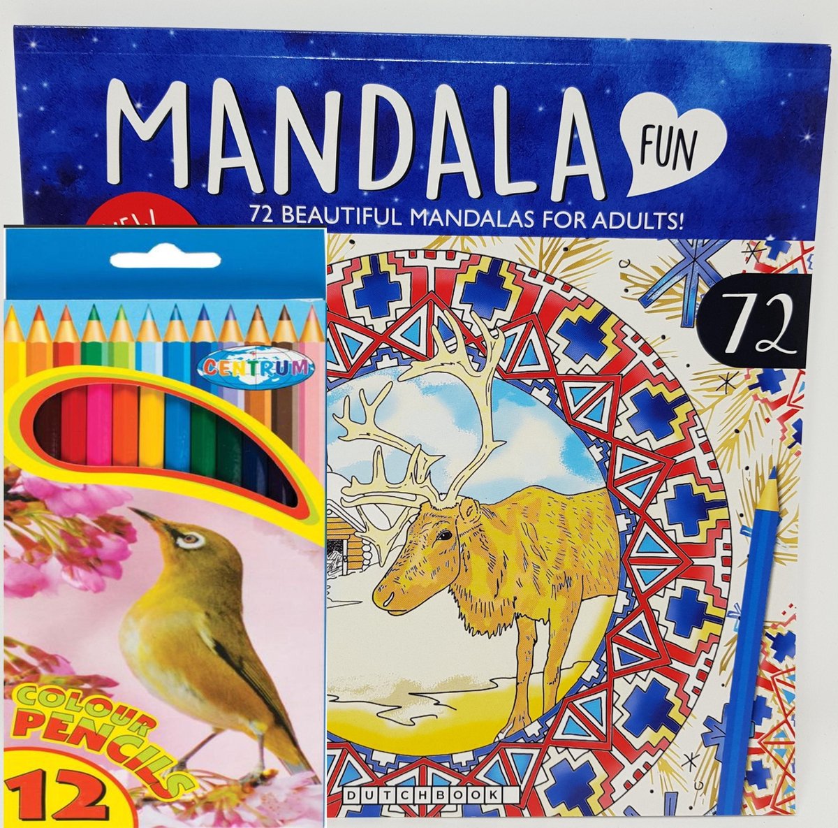 Dit mooie Mandala kleurboek is speciaal voor volwassenen en heeft maar liefst 72 kleurplaten. U krijgt hier ook 12 kleurpotloden in mooie levendige kleuren. Heel veel kleur plezier!