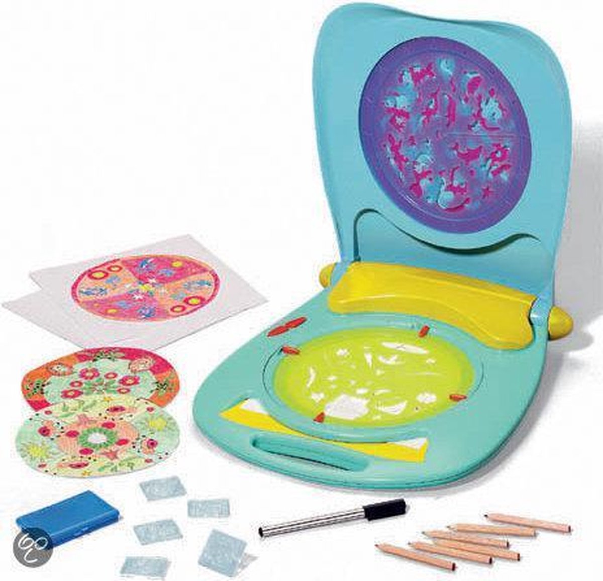 Deze electrische Mandale Designer is de nieuwe tekenmachine voor kleine creativelingen. Met behulp van de stempels en sjablonen kun je oneindig veel mooie mandela's maken.