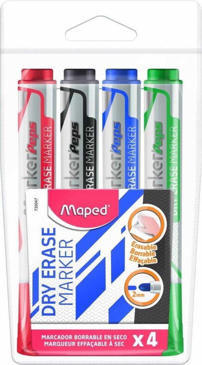 Maped Dry Erase markers zijn uitwisbare markers met een punt van 2 mm, 4 stuks