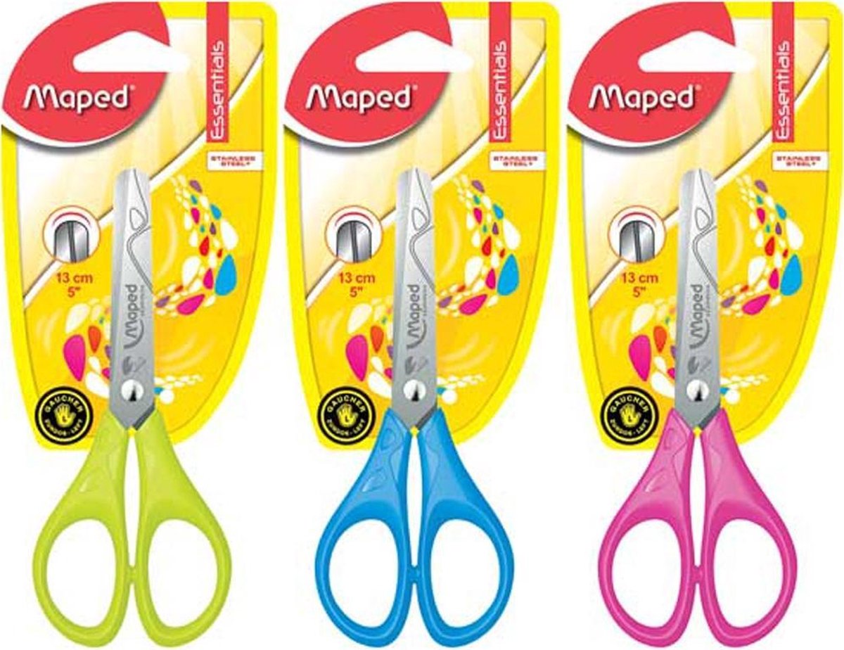 Met deze linkshandige schaar van Maped kun je veilig alles knippen wat je wilt! De punten zijn afgerond, zodat je jezelf er niet mee kunt verwonden. Op een van de scharen staat een centimeterverdeling, wat handig is als je een bepaalde lengte af moet knippen. De schaar is van roestvrij staal en komt in drie vrolijke kleuren: blauw, roze en lime. U kunt niet kiezen, maar ontvangt een willekeurige uitvoering.