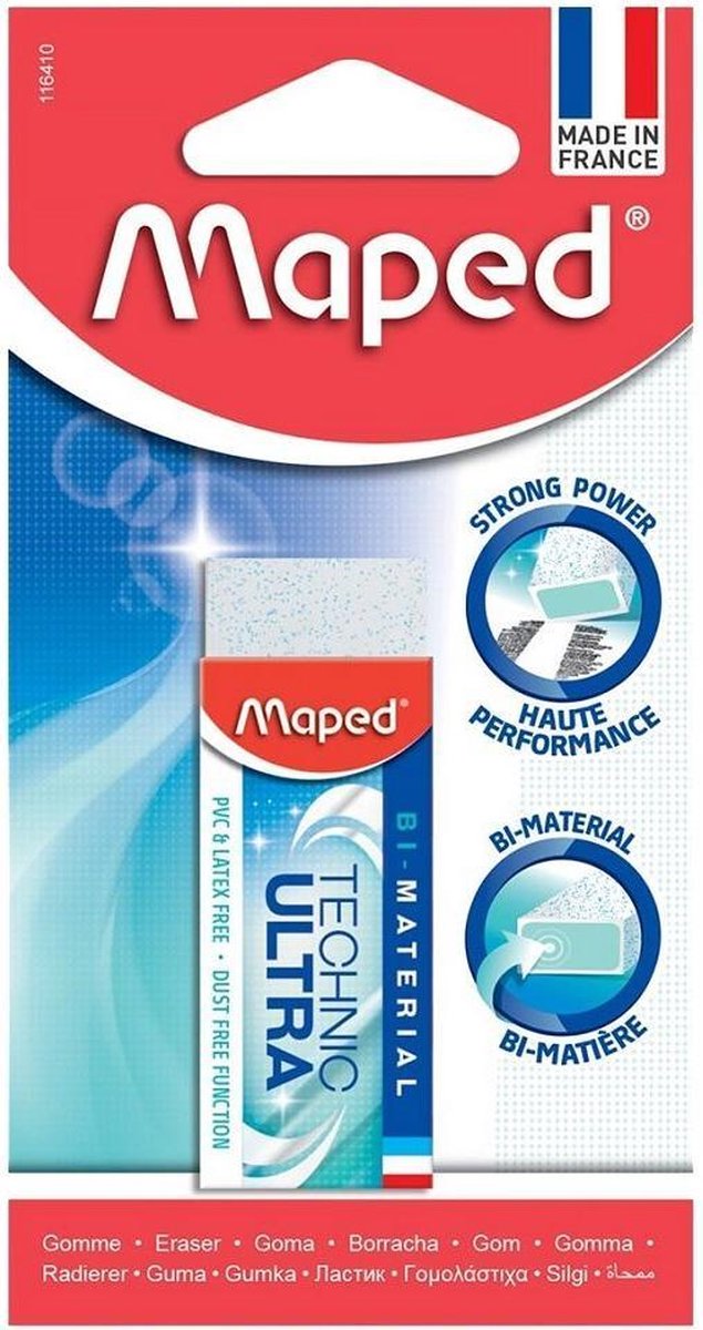 De Maped Technic Ultra gum is stevig, effectief en laat weinig restjes achter. Geschikt voor kinderen vanaf3 jaar.