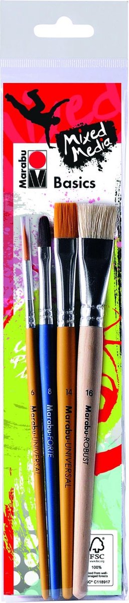 Marabu 018400202. Vorm penseel: Ronde borstel, Vorm penseel 2: Plat. Aantal per verpakking: 1 stuk(s)