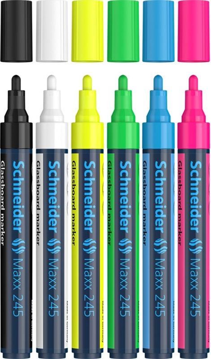 Marker Schneider Maxx 245 6st. in etui. Zwart, wit, geel, groen, blauw, rood