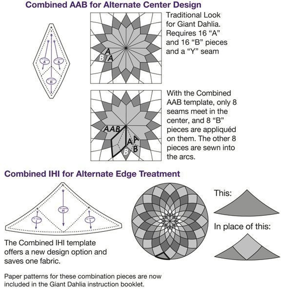 Merk: Marti Michell. Artikel: Template. Optioneel Template Set voor de Giant Dahlia. Artikelnummer: 8039. Met deze optionele templateset kunt u het middendeel en de rand van de prachtige Giant Dahlia een iets ander uiterlijk geven. De Giant Dahlia heeft een diameter van 137 cm. Dit optionele template set is dus alleen te gebruiken samen met de Giant Dahlia template set. Nummer 8949. De templates zijn van sterk acryl gemaakt met een naadtoeslag van 6 mm. Het merk Marti Michell. Marti Michell is als Martha Glenn op een boerderij in Des Moines in de staat Iowa in Amerika geboren. Van jongs af aan kwam ze met het handwerken in aanraking. Ze trouwde met Richard Michell. Martha Glenn werd Marti Michell. In 1969 besloot ze een naaischool te beginnen. Ook het quilten kreeg haar belangstelling. Decennia later is Marti Michell een grootheid in de naai- en quiltwereld. Wij hebben diverse rulers (linialen) en templates (mallen) van Marti Michell beschikbaar. Het merk Marti Michell. Marti Michell