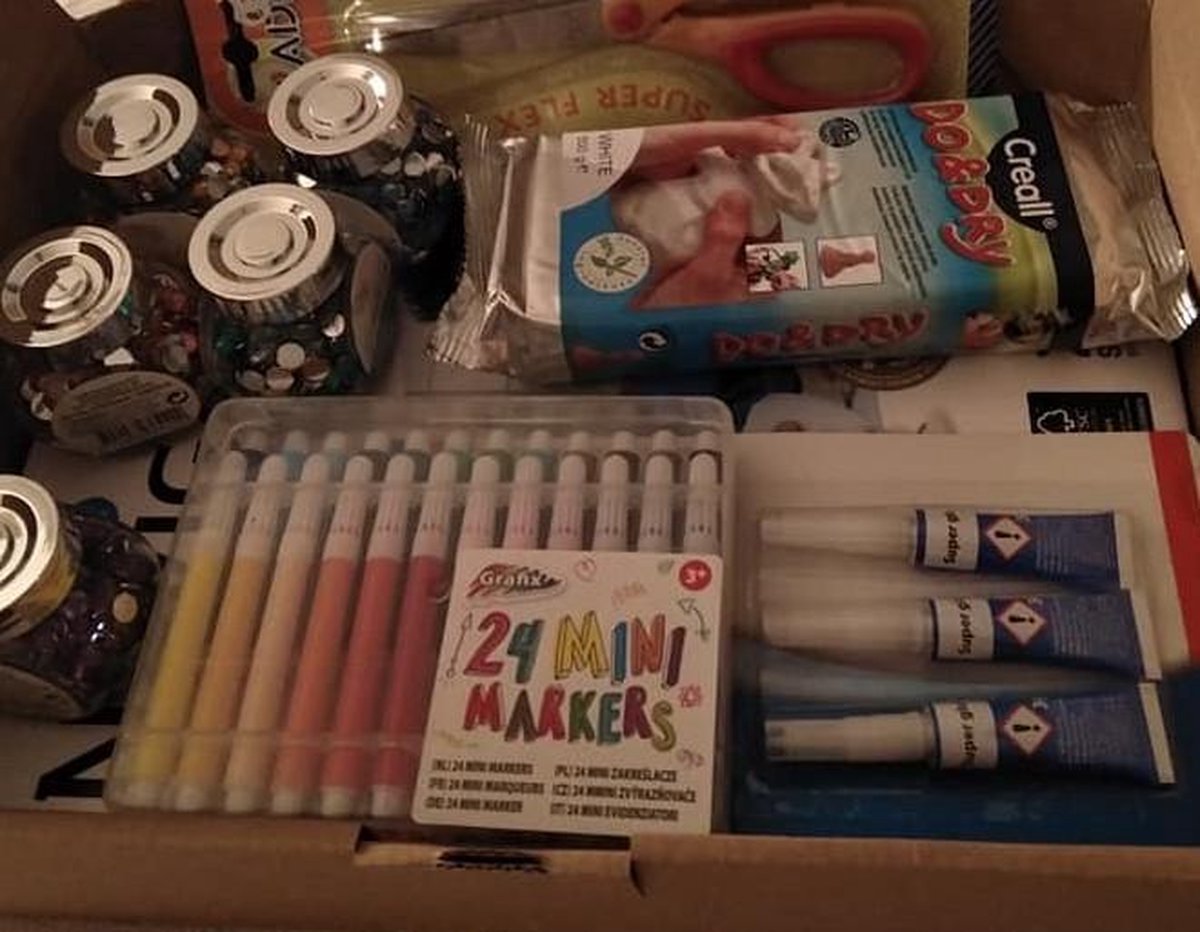 mega hobby/ knutsel pakket 6 items A4 office paper 250 vellen/ paladin schaar/ gemstones 5 flesjes groen, paars, roze, geel, blauw/ 24 st markers grafix/ hobby klei wit 500 gr/ secondelijm 9 gram dit pakket moeten kinderen boven 8 jaar gebruiken. Ondertoezicht van ouderen gebruiken in verband met secondelijm en gemstenen
