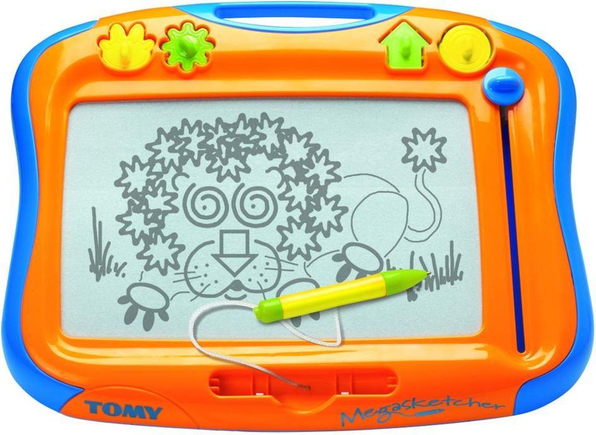 De magnetische Megasketcher heeft een uniek, speciaal scherm waarmee beginnende kunstenaars heldere, scherpe tekeningen kunnen maken. De tekeningen verdwijnen op magische wijze met één beweging van de wisser, klaar om opnieuw te beginnen! Schoon, knoeivrij en voorzien van handig handvat. Er is een pen met twee uiteinden om mee te tekenen en er worden ook vier vormstempels meegeleverd. Haal de artiest in jezelf naar boven met de Megasketcher Classique Schoon, knoei-vrij magnetisch tekenbord met gemakkelijk te dragen handvat De magische pen met twee uiteinden tekent dikke en dunne lijnen Bevat vier leuke stempels met verschillende vormen Magnetisch scherm wordt gewist door eenvoudig de hendel te vegen Helpt de verbeeldingskracht en motoriek van uw kind te ontwikkelen Geen batterijen, inkt of papier nodig