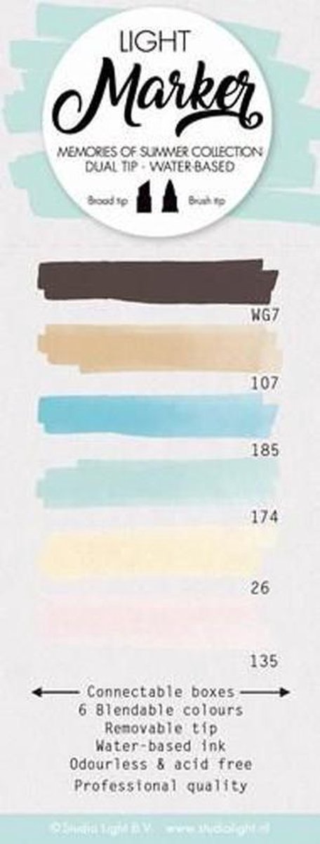 Memories of Summer - Box 6 water based dual tip markers bright Connectable Boxes 6 Blendable colours Removable tip Water based ink Odourless & acid free Professional Quality