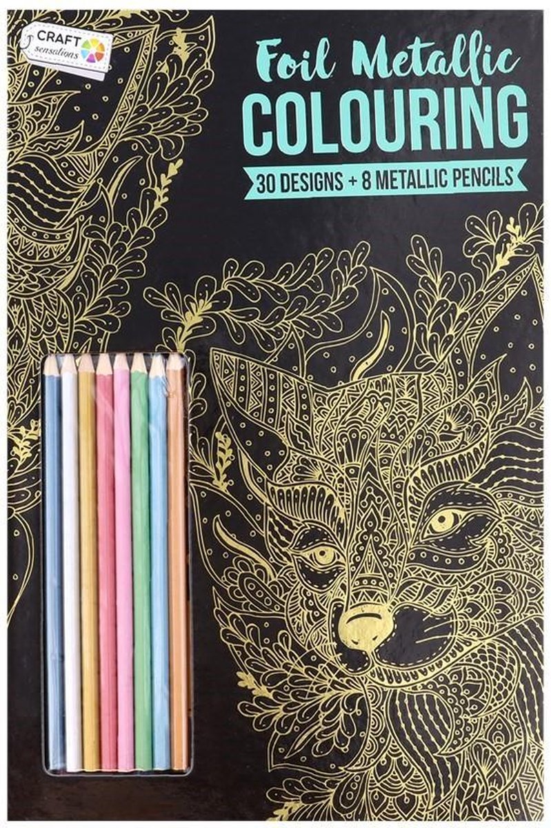 Kleurboek met 8 kleurpotloden voor Kinderen & Volwassenen. 30 nieuwe designs Metallic stijl inclusief 8 metallic kleurige potloden "Even onthaasten en nieuwe energie opdoen". De 30 tekeningen in het boek hebben een formaat van 30cm x 21cm. (A4 Formaat) Maak betoverend mooie creaties in dit bijzondere kleurboek met metallic figuren.