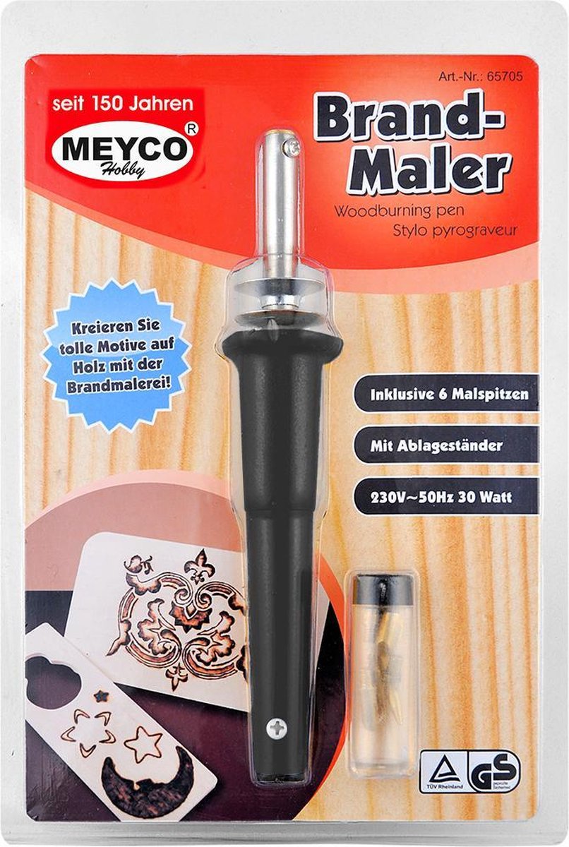 Maak kunst op hout met deze Meyco Hobby Houtbrander! U kunt met deze brander mooie patronen in hout branden. Wordt geleverd met 6 verschillende bitjes in een opbergkokertje Voorzien van een duitstalige beschrijving.