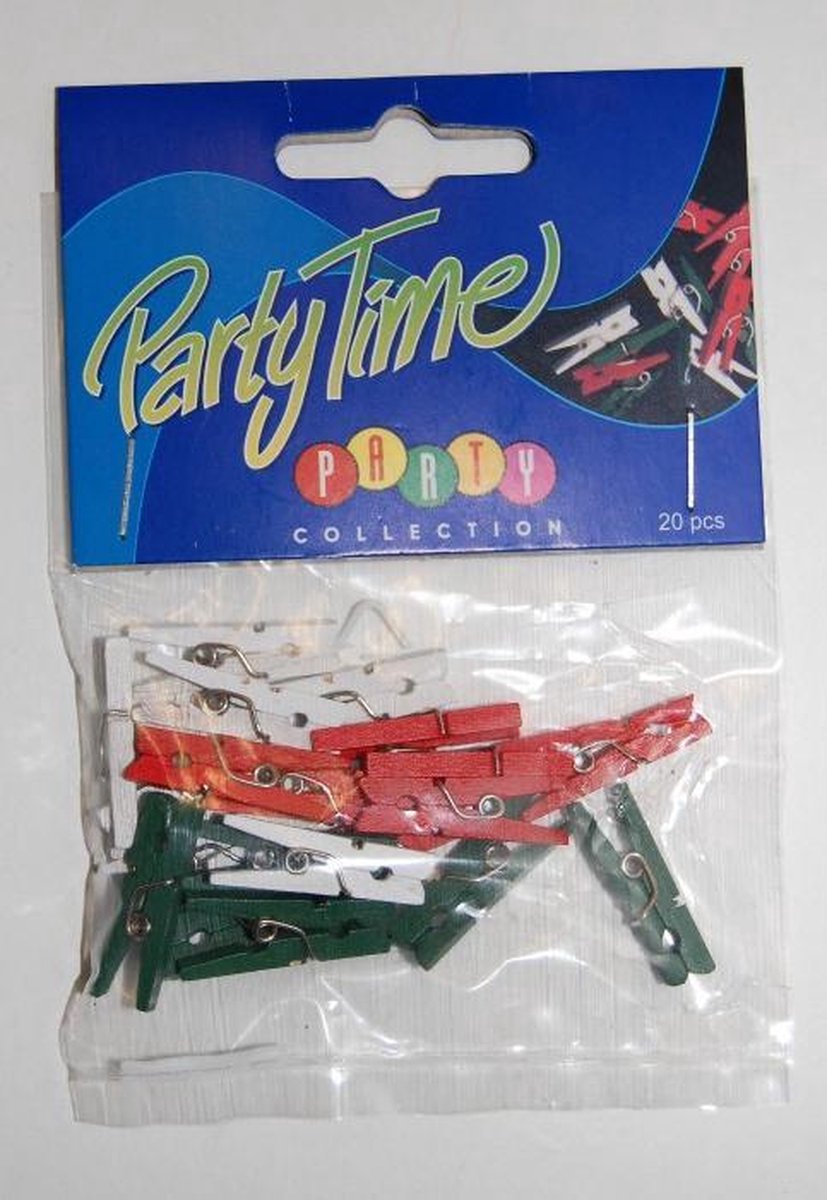 Mini knijpertjes - twee maal 20 stuks - wit - rood - groen