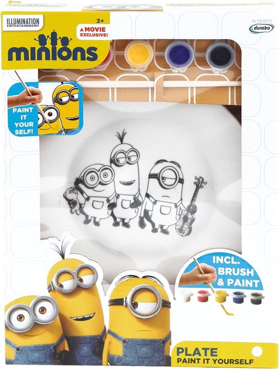 Elke dag begint vrolijk wanneer je kunt ontbijten van je zelfbeschilderde minionsbord. Met de 5 kleuren verf beschilder jij je minions zoals jij dat wil! Verkrijgbaar in 2 verschillende uitvoeringen. Inhoud: 5 kleuren verf, 1 penceel, 1 minionsbord.