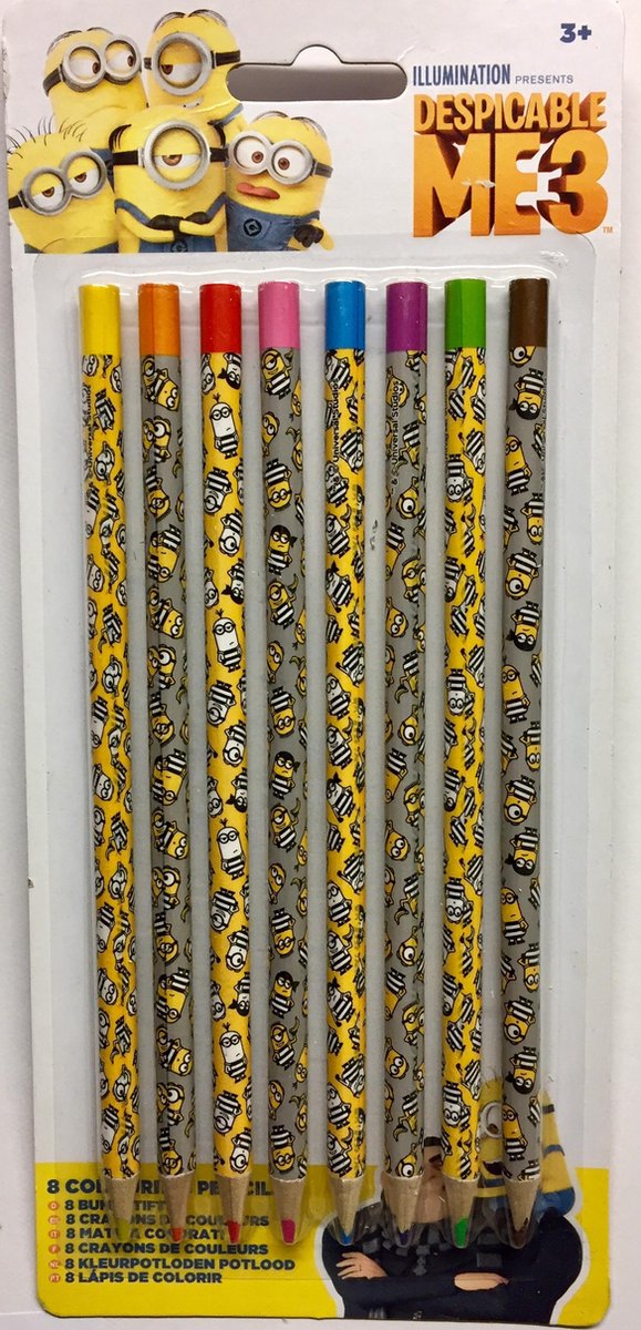 Minions kleurpotloden set 8 stuks - Despicable Me 3 Minions kleurpotloden van Sambro. Maak de mooiste tekeningen met deze set van Minions. In de set zitten acht verschillende kleurpotloden. Niks houdt jou nog tegen om de mooiste tekeningen te maken. Inhoud 8 kleurpotloden met de kleuren: Geel Oranje Rood Roze Blauw Paars Groen Bruin De potloden zijn 18 cm lang.