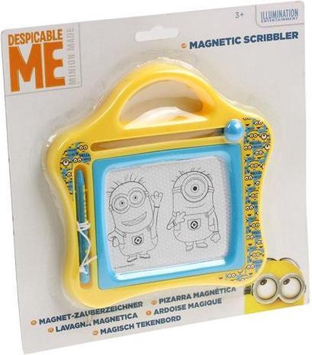 Minions Magnetisch Tekenbord. Na het kleuren veeg je het bord weer gemakkelijk schoon om nogmaals te tekenen. Kleuren in zwart-wit. Afmetingen: 16x16 CM!!