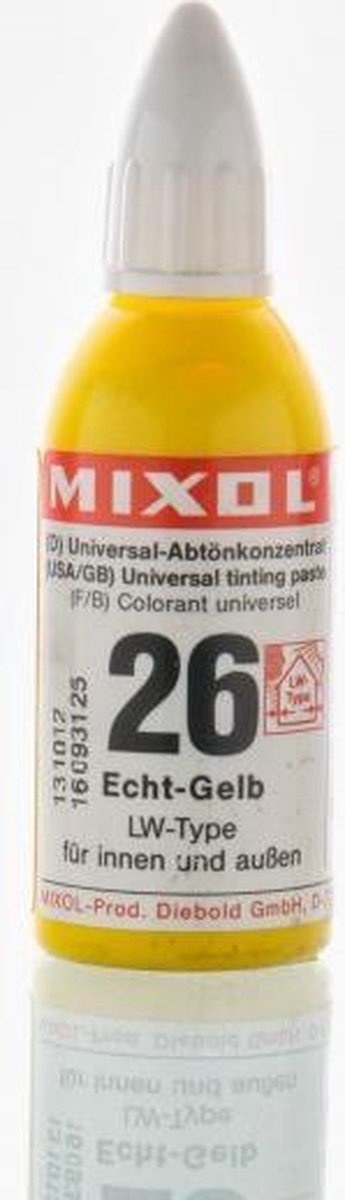 Zeer krachtig : kleurt tot 10 % zonder de kwaliteit van de verf aan te tasten. Mixol is sinds jaren de koploper van de universele mengkleuren. Nagenoeg elke verf kan daarom met Mixol gekleurd worden.Mixol biedt u 33 kleurconcentraten aan waarmee in een handomdraai meer dan 1000 tinten gerealiseerd worden. Mixol kent geen velvorming, droogt niet uit, is vorst- en hittebestendig, gemakkelijk te doseren en daarom erg besparend.