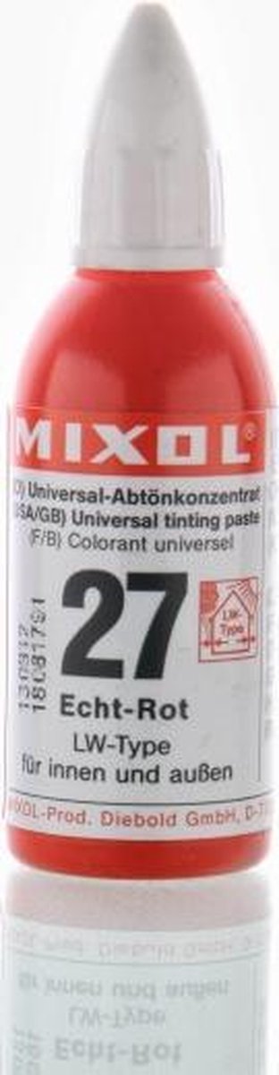 Zeer krachtig : kleurt tot 10 % zonder de kwaliteit van de verf aan te tasten. Mixol is sinds jaren de koploper van de universele mengkleuren. Nagenoeg elke verf kan daarom met Mixol gekleurd worden.Mixol biedt u 33 kleurconcentraten aan waarmee in een handomdraai meer dan 1000 tinten gerealiseerd worden. Mixol kent geen velvorming, droogt niet uit, is vorst- en hittebestendig, gemakkelijk te doseren en daarom erg besparend.