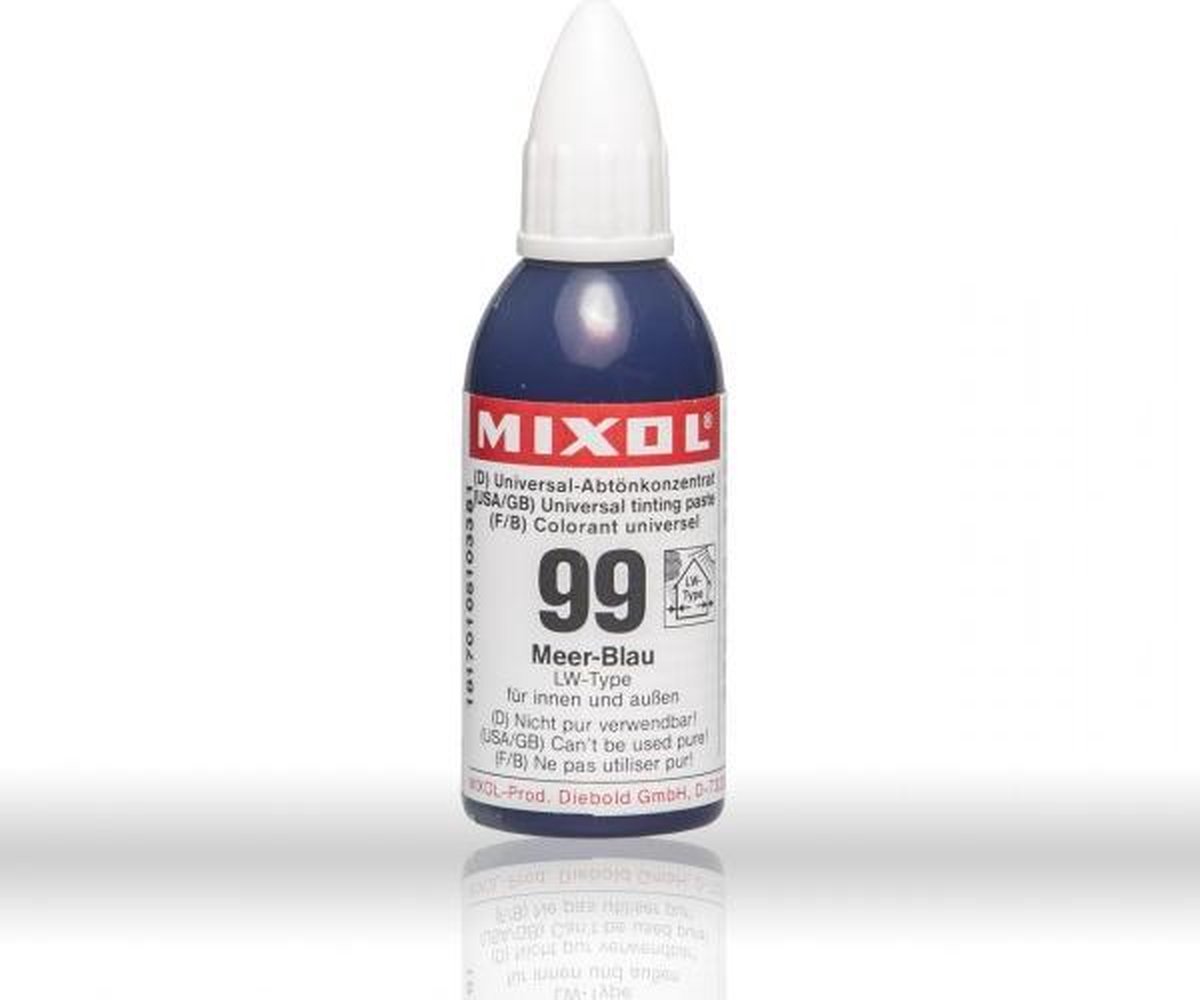 Zeer krachtig : kleurt tot 10 % zonder de kwaliteit van de verf aan te tasten. Mixol is sinds jaren de koploper van de universele mengkleuren. Nagenoeg elke verf kan daarom met Mixol gekleurd worden.Mixol biedt u 33 kleurconcentraten aan waarmee in een handomdraai meer dan 1000 tinten gerealiseerd worden. Mixol kent geen velvorming, droogt niet uit, is vorst- en hittebestendig, gemakkelijk te doseren en daarom erg besparend.