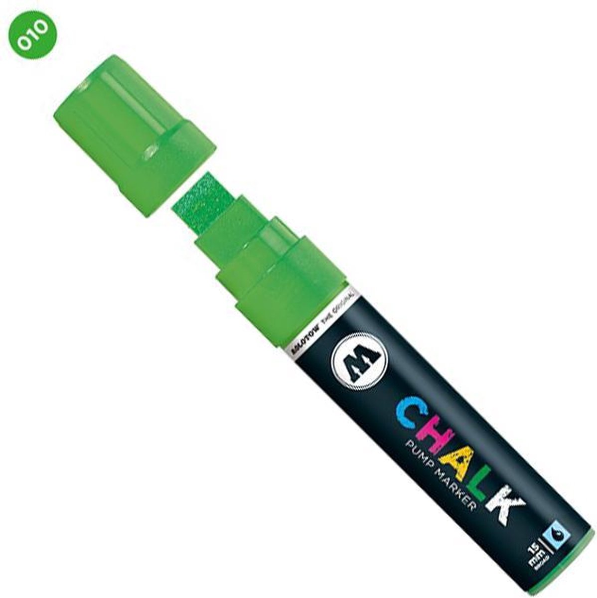 Deze Molotow 15mm Krijtstift markers zijn perfecte krijtmarkers voor tijdelijke markeringen op alle gladde oppervlaktes. • Krijtverf op waterbasis • Makkelijk verwijderbaar van gladde niet zuigende ondergronden. • sneldrogend • Zeer geschikt voor: glas,spiegels,metaal,plastic • Verwisselbare tips