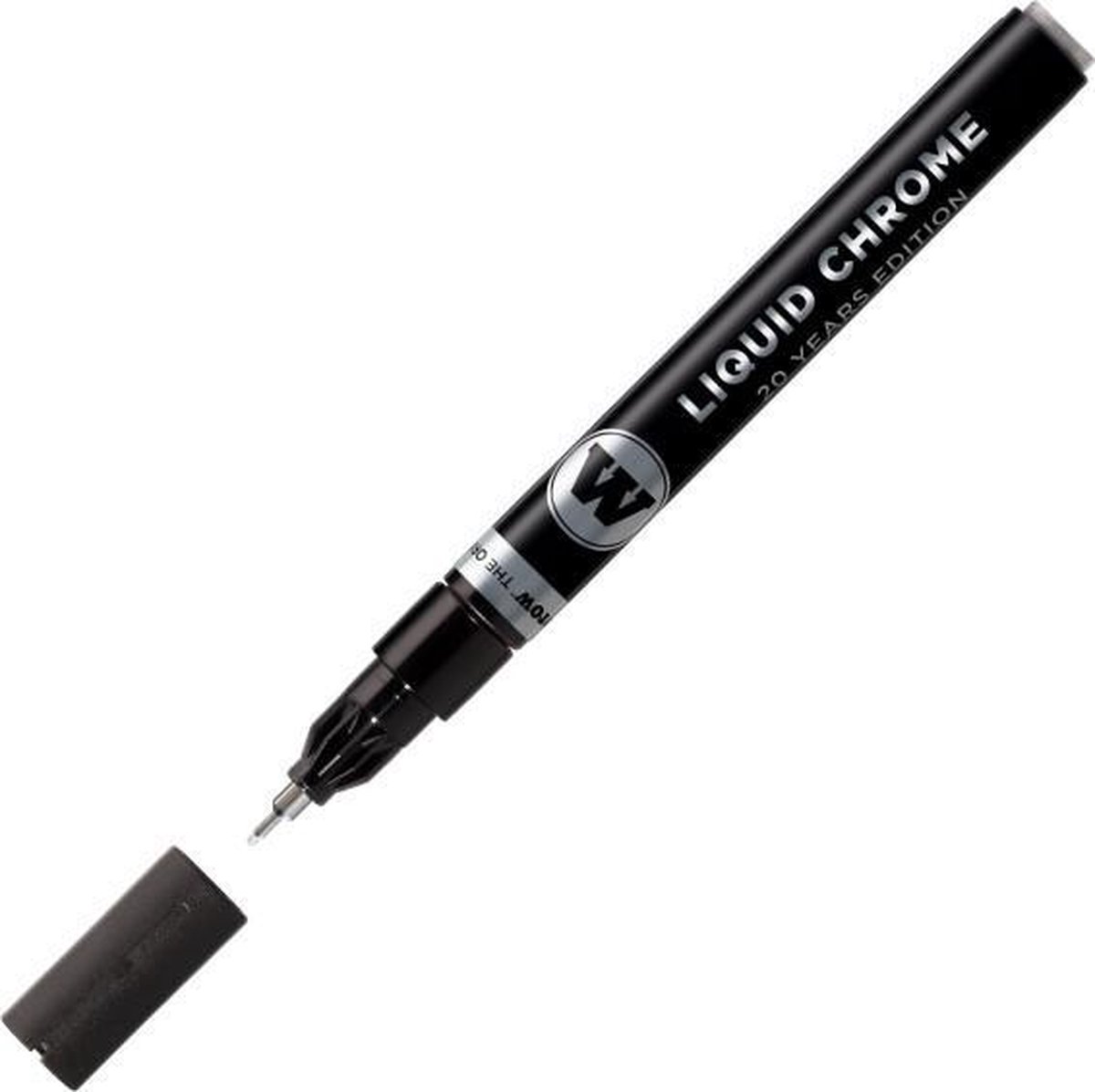 Molotow Liquid Chrome 1mm marker LIQUID CHROME ™ – de 20 jaar editie! De langverwachte vloeibare chroom is het unieke resultaat van een lange ontwikkeling van de burner ™ inkt. Voor het beste spiegel effect op een gladde, niet zuigende ondergrond aanbrengen.• sterk gepigmenteerde speciale inkt op alcoholbasis • hoogglans, vloeibare chroom • hoge dekking • permanent • goede UV bestendigheid • absoluut kras- en slijtvast • voor bijna alle ondergronden Style: effecten, graffiti, hobby, illustratie, kunst, sketches Verf/inkt: alcohol Extra’s: verwisselbare punt, glanzend, sterk dekkend, navulbaar, UV-bestendig, weerbestendig Ook in 2, 4 & 5mm beschikbaar