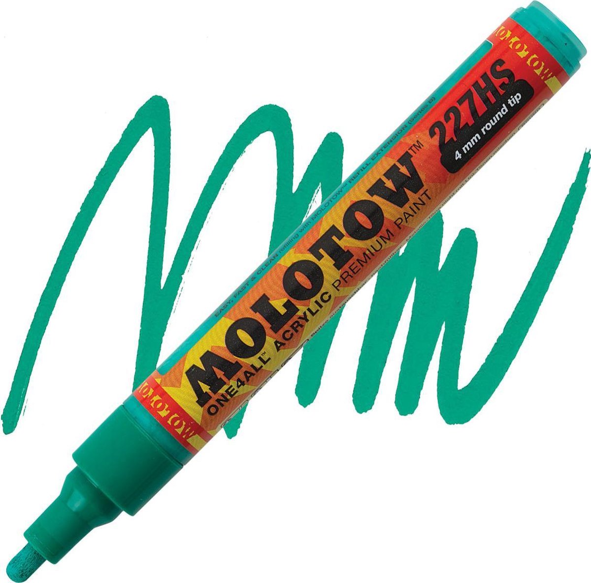 Deze Molotow ONE4ALL™ 227HS 4mm Markers zijn ideaal voor elke ondergrond. 227HS marker op acryl basis met een verwisselbare 4mm ronde tip. One4all – De referentie klasse op het gebied van markers. Ongeëvenaarde dekking, heldere kleuren (100% UV-bestendigheid), Flowmaster ventiel voor een actieve kleur controle en met een gepatenteerde capillaire techniek. Deze baanbrekende hybride inkt kan zowel met water of aceton worden verdund. Een voorbeeld van de te bewerken oppervlakken zijn: metaal, canvas, steen, glas, plastic, leer, papier, karton, hout, textiel, keramiek, etc.