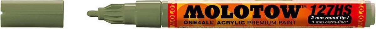 Molotow ONE4ALL™ 127HS 2mm Verfstift Kleurnaam: Amazonas Light Deze Molotow ONE4ALL™ 127HS 2mm Marker zijn ideaal voor elke ondergrond. Systeem: Pomp actie, Flowmaster klep voor een actieve verf-flow controle en de gepatenteerde capillaire technologie. Inhoud: One4all verf. De zeer hoog gepigmenteerde acryl gebaseerde hybride verf is gemakkelijk mengbaar met andere One4All kleuren (individuele tinten), het kan worden verdund met water (doorschijnende effecten) of met aceton (voor permanente hechting op vettige oppervlakken). Hij werkt op bijna elke ondergrond, is zijdemat, droogt snel, heeft een ongelooflijke dekking en is absoluut 100% UV-bestendig. Kan worden gebruikt voor beeldende kunst, hobby, industrie en ambacht voor binnen-en buiten toepassing. Perfect op harde materialen (leer, metaal, glas, steen, plastic, boetseerklei, enz.) zoals mobiele telefoons, computers, schoenen, modelbouw etc. Ook geweldig op absorberende oppervlakken (papier, karton, terracotta, hout, enz.)