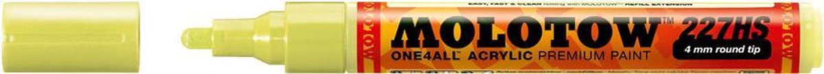 Molotow ONE4ALL™ 227HS 4mm Verfstift Kleurnaam: Poison Green Deze Molotow ONE4ALL™ 227HS 4mm Markers zijn ideaal voor elke ondergrond. 227HS marker op acryl basis met een verwisselbare 4mm ronde tip. One4all – De referentie klasse op het gebied van markers. Ongeëvenaarde dekking, heldere kleuren (100% UV-bestendigheid), Flowmaster ventiel voor een actieve kleur controle en met een gepatenteerde capillaire techniek. Deze baanbrekende hybride inkt kan zowel met water of aceton worden verdund. Een voorbeeld van de te bewerken oppervlakken zijn: metaal, canvas, steen, glas, plastic, leer, papier, karton, hout, textiel, keramiek, etc.