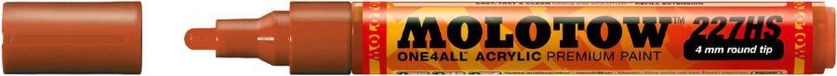 Molotow ONE4ALL™ 227HS 4mm Verfstift Kleurnaam: Lobster Deze Molotow ONE4ALL™ 227HS 4mm Markers zijn ideaal voor elke ondergrond. 227HS marker op acryl basis met een verwisselbare 4mm ronde tip. One4all – De referentie klasse op het gebied van markers. Ongeëvenaarde dekking, heldere kleuren (100% UV-bestendigheid), Flowmaster ventiel voor een actieve kleur controle en met een gepatenteerde capillaire techniek. Deze baanbrekende hybride inkt kan zowel met water of aceton worden verdund. Een voorbeeld van de te bewerken oppervlakken zijn: metaal, canvas, steen, glas, plastic, leer, papier, karton, hout, textiel, keramiek, etc.
