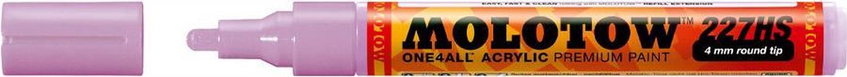 Molotow ONE4ALL™ 227HS 4mm Verfstift Kleurnaam: Lilac Pastel Deze Molotow ONE4ALL™ 227HS 4mm Markers zijn ideaal voor elke ondergrond. 227HS marker op acryl basis met een verwisselbare 4mm ronde tip. One4all – De referentie klasse op het gebied van markers. Ongeëvenaarde dekking, heldere kleuren (100% UV-bestendigheid), Flowmaster ventiel voor een actieve kleur controle en met een gepatenteerde capillaire techniek. Deze baanbrekende hybride inkt kan zowel met water of aceton worden verdund. Een voorbeeld van de te bewerken oppervlakken zijn: metaal, canvas, steen, glas, plastic, leer, papier, karton, hout, textiel, keramiek, etc.