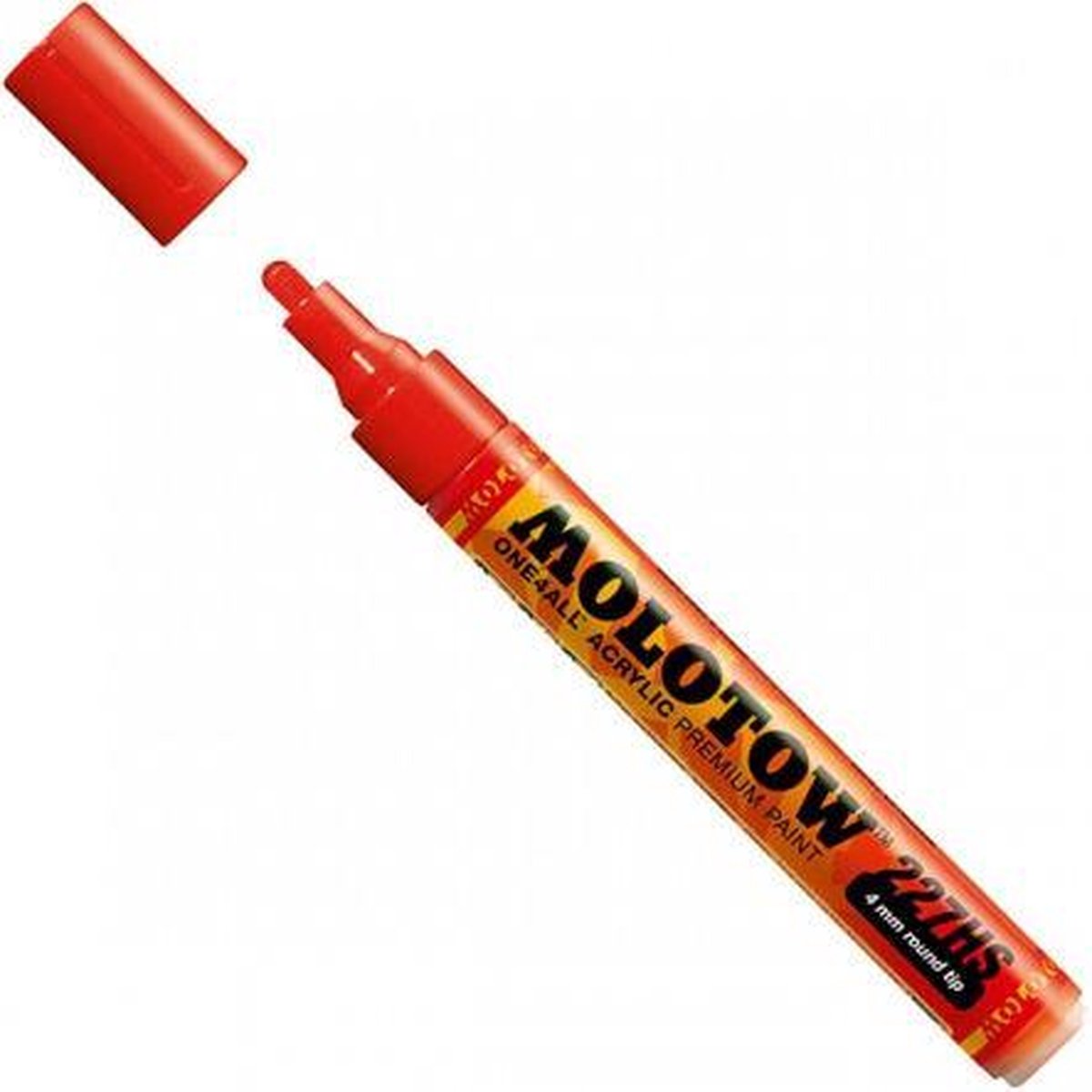 Molotow ONE4ALL™ 227HS 4mm Verfstift Kleurnaam: Traffic Red Deze Molotow ONE4ALL™ 227HS 4mm Markers zijn ideaal voor elke ondergrond. 227HS marker op acryl basis met een verwisselbare 4mm ronde tip. One4all – De referentie klasse op het gebied van markers. Ongeëvenaarde dekking, heldere kleuren (100% UV-bestendigheid), Flowmaster ventiel voor een actieve kleur controle en met een gepatenteerde capillaire techniek. Deze baanbrekende hybride inkt kan zowel met water of aceton worden verdund. Een voorbeeld van de te bewerken oppervlakken zijn: metaal, canvas, steen, glas, plastic, leer, papier, karton, hout, textiel, keramiek, etc.