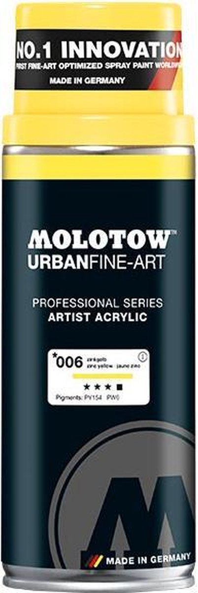 Molotow Urban Fine Art Acryl Spray: Zink Geel - 400ml spuitbus voor canvas, plastic, metaal, hout etc.