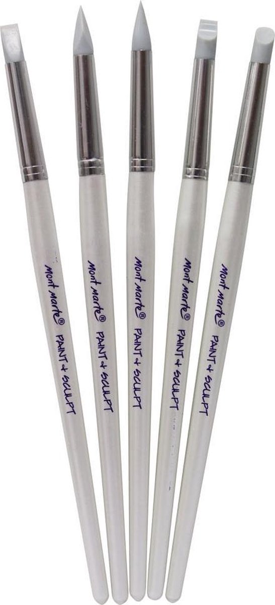 Mont Marte Paint Shapers zijn een uniek hulpmiddel om toe te voegen aan de kit van je kunstenaar. De set siliconen kwasten met parelmoer gekleurd houten handvat, elk met een andere flexibele rubberen punt om verf aan te brengen en te verwijderen. Ontdek de grote verscheidenheid aan technieken die mogelijk zijn met Mont Marte Paint Shapers. Gebruik ze bijvoorbeeld bij het vervagen van houtskool tekeningen of gewone potloodstrepen en je zult verbaasd zijn over de effecten die je kunt bereiken met doezelaars. Ze worden ook veel gebruikt bij het aanbrengen van details bij boetseren. Kenmerken Bevat 5 siliconen kwasten Houten handvat, parelmoer gekleurd Grijze penseelkoppen Kan worden gebruikt om pastels of houtskool, gladde en contourklei te mengen en te definiëren en om lijm en maskeervloeistof aan te brengen. Geschikt voor gebruik met: Mont Marte acrylverf Mont Marte olieverf Mont Marte Pastelproducten Mont Marte houtskoolproducten TIPS Paint Shapers zijn eenvoudig schoon te maken