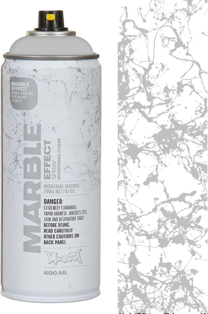 Montana Effect-Spray Marble Spuitbussen Maak verbluffend realistische marmereffecten. Montana Marble kan worden toegepast op diverse ondergronden zoals: papier, karton, hout, canvas, metaal , keramiek, steen, acrylverven enz. Marble effect wordt standaard geleverd met een caligraphy cap die je kan verstellen om de lijnen horizontaal of verticaal te maken. Ook in wit en zwart verkrijgbaar.
