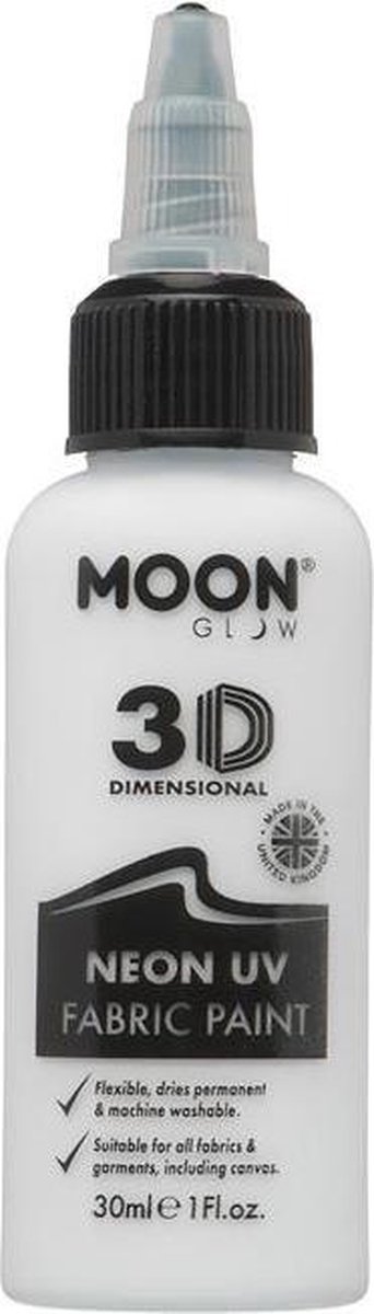 MoonGlow kledingverf Verf je kleding of andere textiel met deze verf van MoonGlow. Onder uv-licht zal de verf gaan gloeien. Superstoer in het donker, zoals op halloweenfeestjes of in de nachtclub. Je kan de verf direct vanuit de fles op de kleding knijpen. Met de punt van de fles kan je secuur te werk gaan en prachtige creaties maken op je kleding. Kleding met de verf kan in de wasmachine op lage temperatuur wanneer de verf is uitgehard. Specificaties: Geslacht: unisex, junior Kleur: wit Materiaal tube: kunststof Inhoud: 30 ml Leeftijd: vanaf 6 jaar