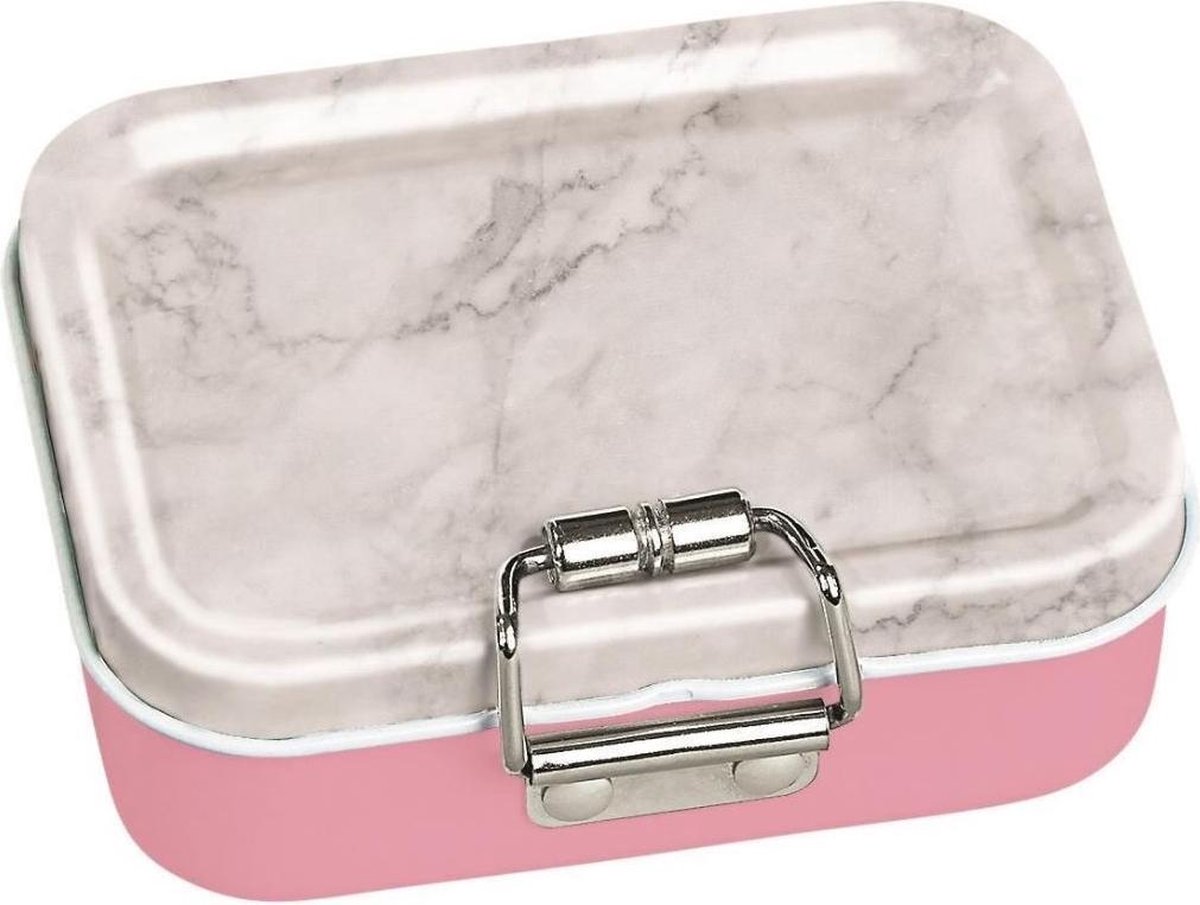 Moses mini-bureaubox Dit leuke, kleurrijke mini-bureauboxje met marmeropdruk is handig voor onderweg. De klipsluiting is ideaal en er worden verschillende accessoires meegeleverd, zoals een schaartje, plakband, nietmachine, nietjes en paperclips. Specificaties: Kleur: grijs, roze, wit Geslacht: junior, unisex Materiaal: staal Afmetingen: 8,4 x 6 x 3 cm (L x B x H) Leeftijd: vanaf 6 jaar Inhoud: 1 Mini-bureaubox 1 Schaar 1 Plakbandhouder 1 Plakbandrol 1 Nietmachine 1 Set paperclips 1 Set nietjes