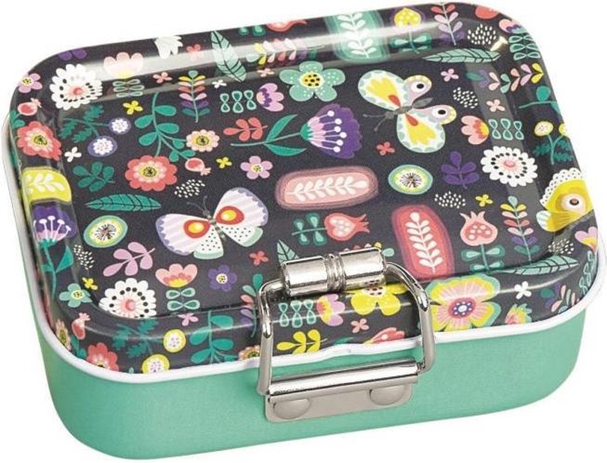 Moses mini-burobox Leuk, kleurrijk mini buro boxje met bloemen. De klipsluiting is ideaal. Stijlvol voor ieder buro van meisjes. Kleur van afbeelding twee kan verschillend zijn. Specificaties: Kleur: groen, zwart Geslacht: meisjes Materiaal: staal Afmetingen: 8 x 6 x 3 cm Leeftijd: van 6 tot 12 jaar Inhoud: 1 Mini buro box 1 Schaar 1 Plakbandhouder 1 Plakbandrol 1 Nietmachine 1 Set paperclips 1 Set nietjes